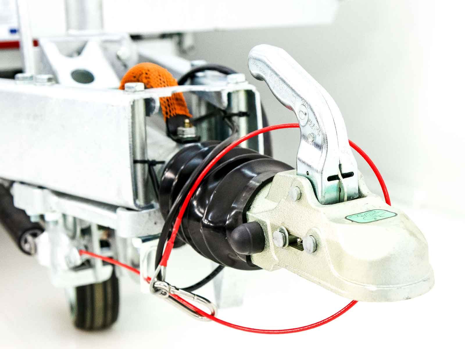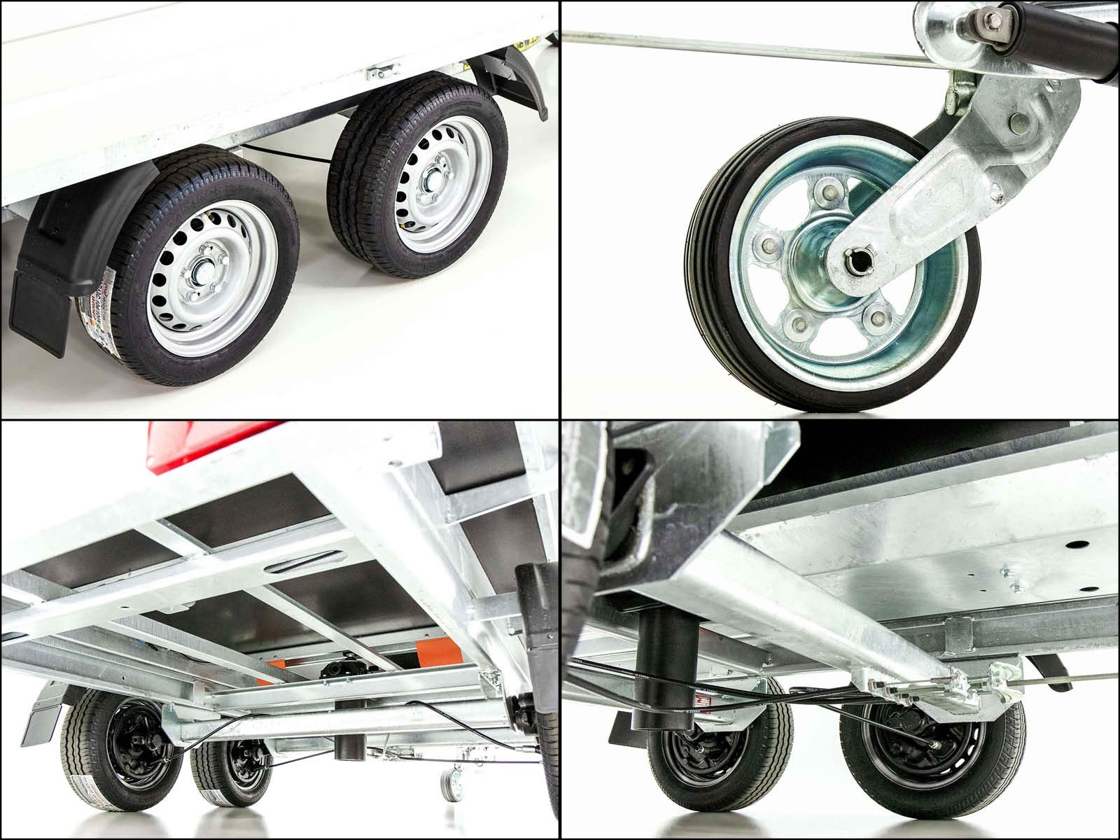 – Achse und Zugrohr komplett feuerverzinkt | Gummifederachse | V-Deichsel mit Zugkugelkupplung | Automatik-Schwerlaststützrad
