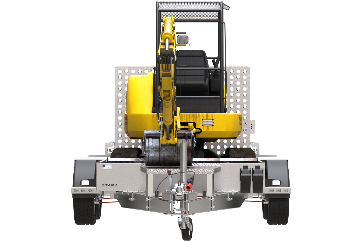 La remorque de transport UNITRAILER STARK 3 260 est également une structure durable, conçue spécifiquement pour le transport de mini-pelles et de matériaux de construction lourds. Deux essieux et une roue de support facilitent la manœuvre, et le support de godet facilite le transport des machines. La caisse de chargement aux dimensions de 2594×1470 mm et d’un PTC de 2700 kg permet de charger une grande quantité de marchandises, et des poignées solides assurent leur fixation en toute sécurité. La construction du châssis porteur en acier de construction à résistance accrue et la surface de transport en contreplaqué étanche d’une épaisseur de 15 mm garantissent la fiabilité et la durabilité de la remorque.